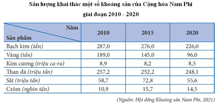 Câu 15. Nhận định nào sau đây không đúng với công nghiệp khai thác khoáng sản ở Cộng hòa Nam Phi?