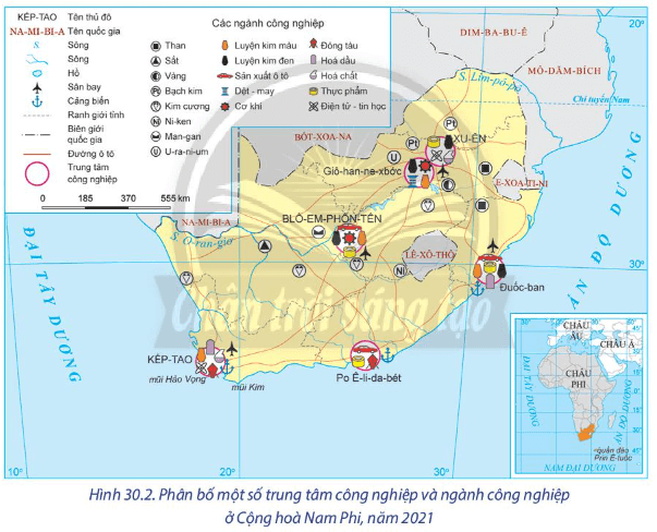 ♦ Cộng hòa Nam Phi đã hình thành các trung tâm công nghiệp quan trọng với hoạt động sản xuất đa dạng. Ngoài ra, các nhà máy công nghiệp khai khoáng cũng được triển tại các mỏ khai khoáng ở quốc gia này.