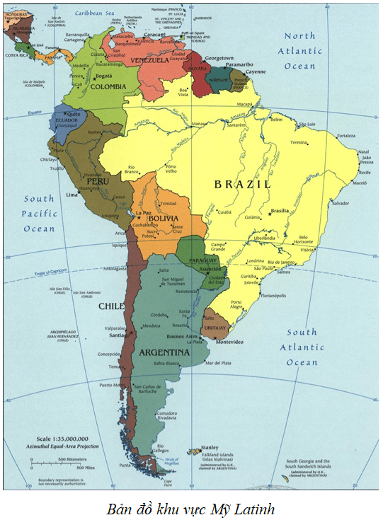 + Khu vực Mỹ Latinh kéo dài từ khoảng vĩ độ 33o32’B đến vĩ độ 53o53’N.