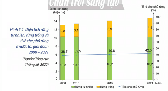 - Tổng diện tích rừng và tỉ lệ che phủ rừng tăng qua các năm nhưng chủ yếu là rừng trồng.