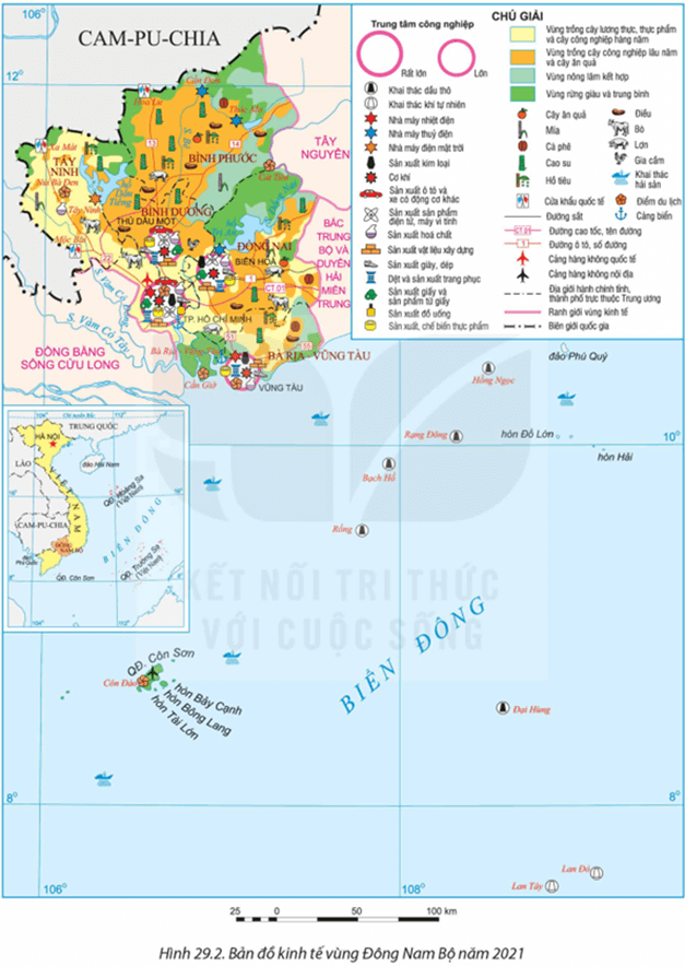 + Gồm TP Hồ Chí Minh và 5 tỉnh: Bình Dương, Bình Phước, Tây Ninh, Đồng Nai và Bà Rịa – Vũng Tàu. Diện tích năm 2021 là 23,6 nghìn km2.