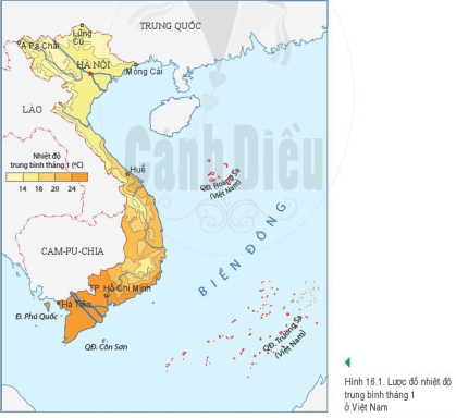 b) Nhiệt độ trung bình tháng 1 tăng dần từ Bắc vào Nam