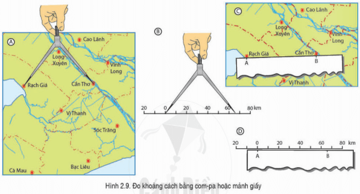 - Để tính khoảng cách thực tế giữa hai địa điểm trên bản đồ, ta căn cứ vào tỉ lệ bản đồ.