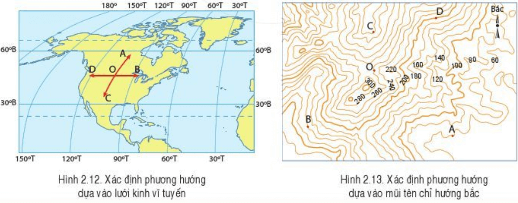 - Có hai cách xác định phương hướng trên bản đồ
