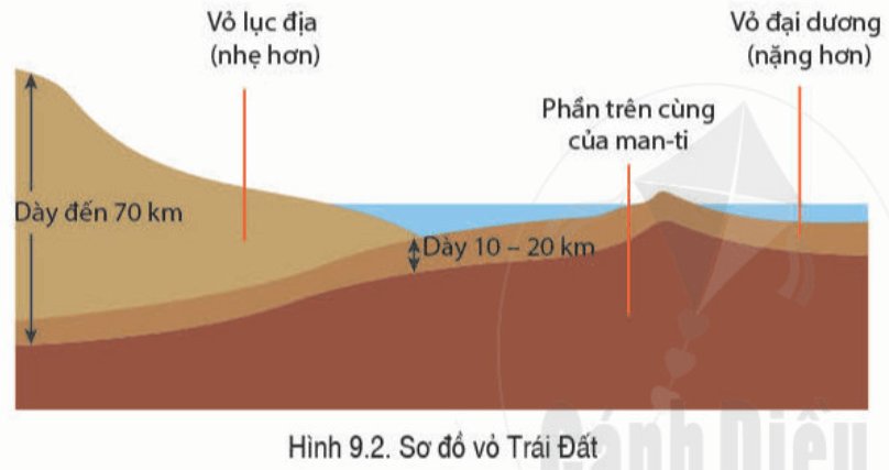 + Lớp vỏ dày 5 - 10 km đến khoảng 20 km ở đại dương, và dày đến 70 km ở khu vực có khối núi cao.