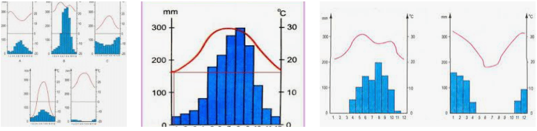 - Biểu đồ nhiệt độ và lượng mưa của một số địa điểm.