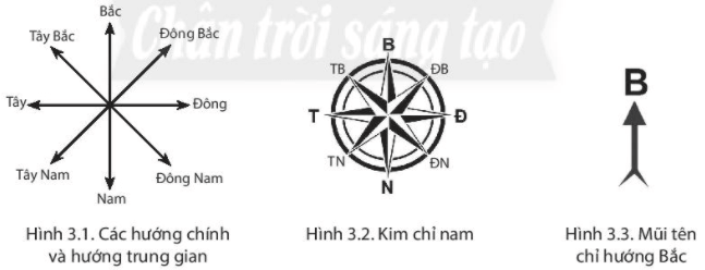 - Các hướng chính trên bản đồ: Bắc, Nam, Đông, Tây.