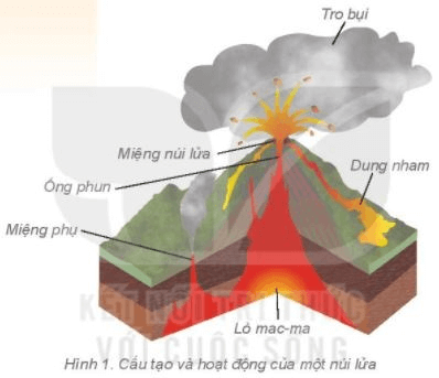 - Các bộ phận của núi lửa: Lò mac-ma, miệng núi lửa, ống phun, dung nham và tro bụi.