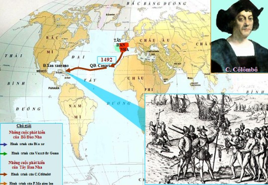 - Năm 1492-1502, Cô-lôm-bô thực hiện 4 cuộc hải trình vượt Đại Tây Dương từ châu Âu sang châu Mỹ, ông đã tìm ra các đảo thuộc quần đảo Ca-ri-bê nhưng ông tin vùng đất này thuộc Tây Ấn Độ và cư dân nơi đây là người Ấn.