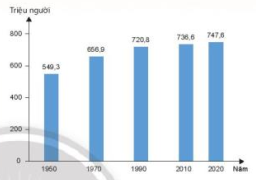 Câu 12. Quan sát biểu đồ quy mô dân số châu Âu, giai đoạn 1950-2020 nhận xét nào sau đây là đúng?