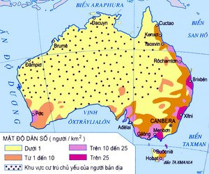 + Nơi đông dân: phía đông và đông nam Ox-xtrây-lia