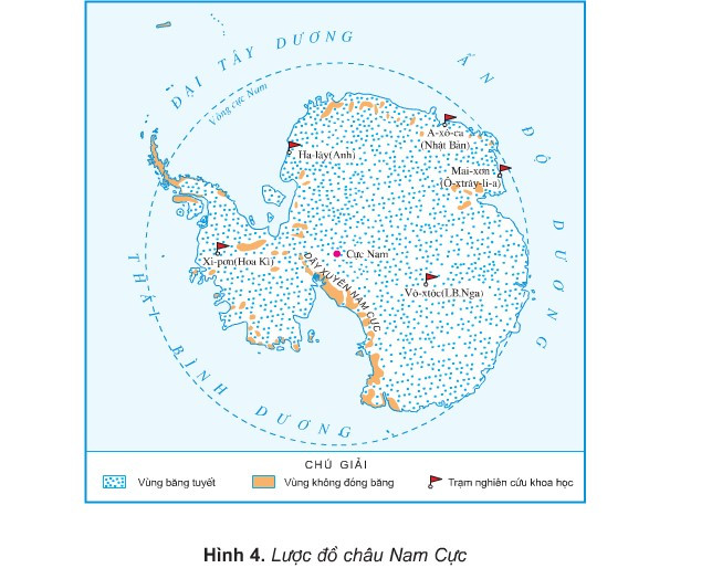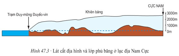 Gần như toàn bộ địa hình Nam Cực được bao phủ bởi lớp băng dày… (SGK - trang 177).