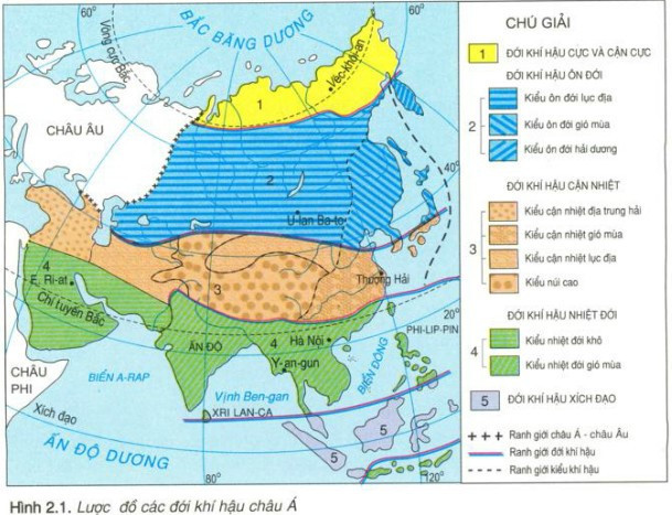 Châu Á không tiếp giáp với Đại Tây Dương - hình 5.1. Bản đồ tự nhiên châu Á (SGK - trang 112).