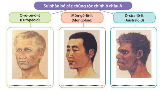 Dân cư châu Á bao gồm nhiều chủng tộc Môn-gô-lô-it; Ơ-rô-pê-ô-it; Ô-xtra-lô-it (SGK - trang 117).
