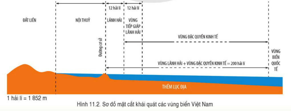 - Lãnh hải là vùng biển có chiều rộng 12 hải lí tính từ đường cơ sở ra phía biển, ranh giới ngoài của lãnh hải là biên giới quốc gia trên biển của Việt Nam.