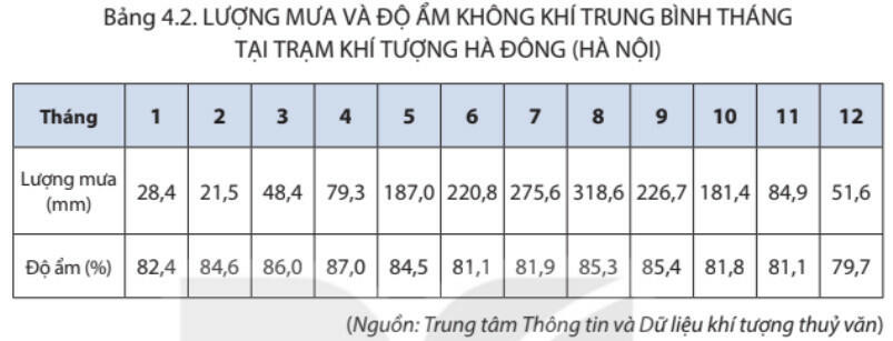 Giải thích: Nước ta có độ ẩm không khí cao, trung bình >80%; lượng mưa lớn, trung bình dao động từ 1500 - 2000 mm/năm.