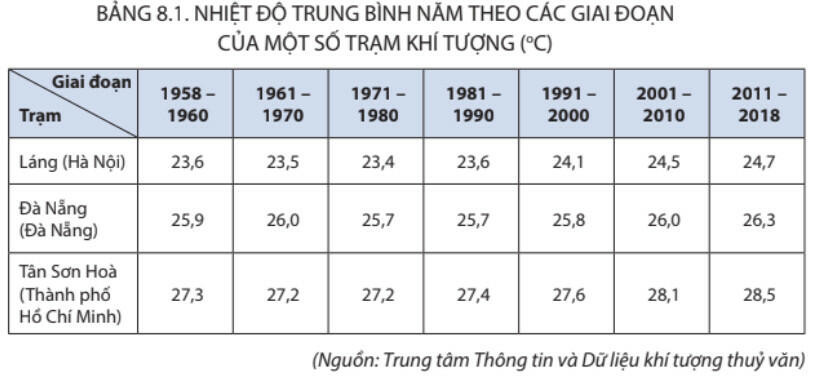 Câu 5: Từ năm 1980 trở lại đây, nhiệt độ trung bình năm trên cả nước có xu thế?