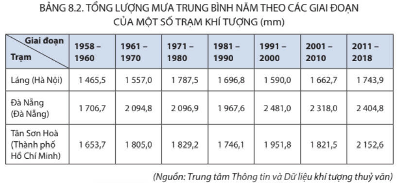 - Biến đổi về lượng mưa: Tổng lượng mưa năm trung bình trên phạm vi cả nước có biến động từ 1958 đến 2018.