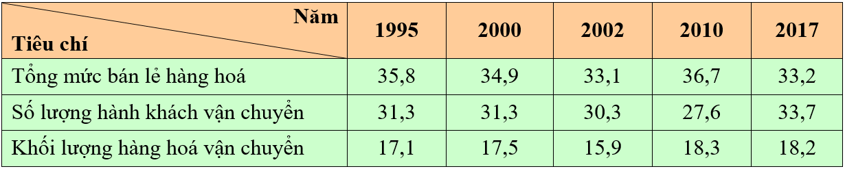 Câu 9: Cho bảng số liệu