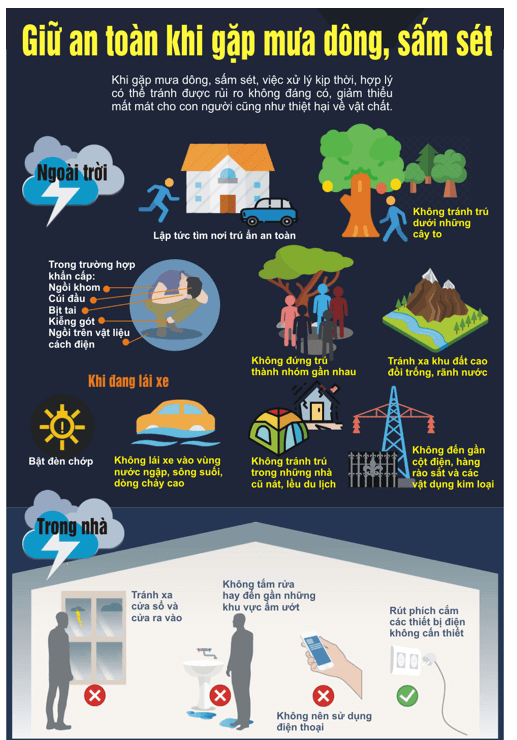 - Không trú dưới gốc cây, cột điện, giữa cánh đồng,...
