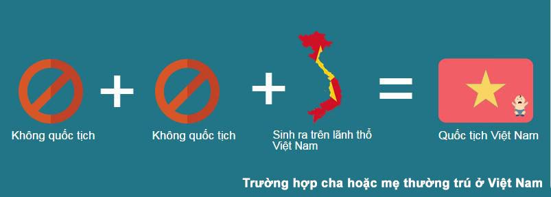 + Sinh ra trên lãnh thổ Việt Nam mà khi sinh ra có cha mẹ đều là người không quốc tịch, nhưng có nơi thường trú tại Việt Nam.