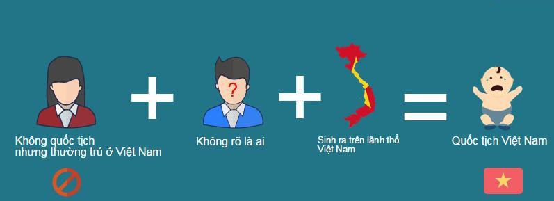 + Sinh ra trên lãnh thổ Việt Nam mà khi sinh ra có mẹ là người không quốc tịch, nhưng có nơi thường trú ở Việt Nam, còn cha không rõ là ai.
