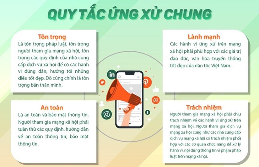 - Thực hiện Quy tắc ứng xử chung áp dụng cho các hành vi của các tổ chức, cá nhân trên mạng xã hội.
