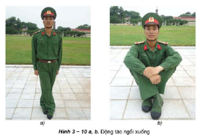 Động tác ngồi xuống, đứng dậy được vận dụng khi học tập, sinh hoạt ngoài trời hoặc trong hội trường (không có ghế) được thống nhất, trật tự.