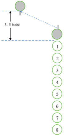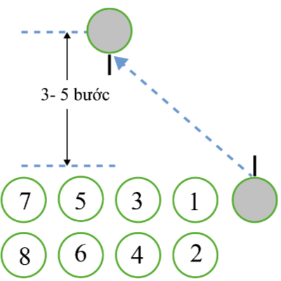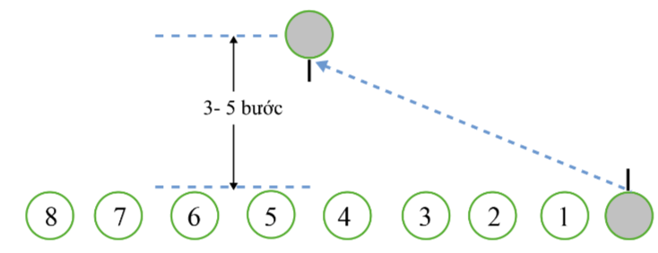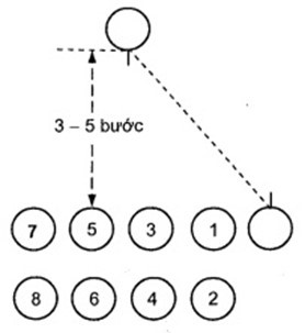 D. cự li giữa hàng trên và hàng dưới là 2 - 3 m.