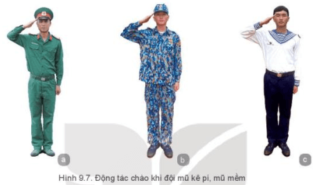- Động tác chào khi đội các loại mũ khác thực hiện như khi đội mũ cứng, chỉ khác đầu ngón tay giữa chạm vào lưỡi trai hoặc vành mũ