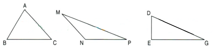 Bài 2: Tam giác nào dưới đây có một góc tù?
