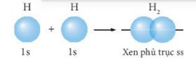 Hình 10.5. Sự xen phủ giữa hai orbital 1s của hai nguyên tử hydrogen hình thành liên kết σ trong phân tử hydrogen