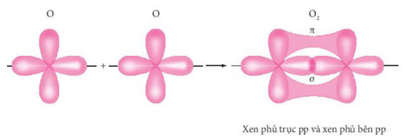 Hình 10.8. Sự xen phủ các AO hình thành liên kết σ và liên kếtπ trong phân tử oxygen