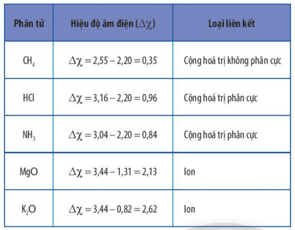 3. Phân biệt các loại liên kết dựa theo độ âm điện