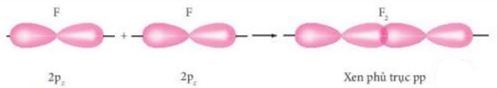 Hình 10.7. Sự xen phủ giữa orbital 2p của nguyên tử fluorine hình thành liên kết σ trong phân tử fluorine