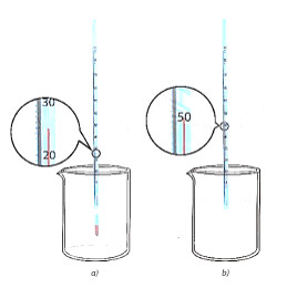 - Bước 1: Cho khoảng 25 ml nước cất vào cốc chịu nhiệt, đặt bầu nhiệt kế vào trong lòng chất lỏng (Hình 13.2a), ghi nhận giá trị nhiệt độ.