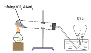 - Bước 1: Trộn đều khoảng 4g tinh thể KClO3 đã được nghiền nhỏ với 1g MnO2. Cho hỗn hợp vào ống nghiệm chịu nhiệt, khổ. Đậy ống nghiệm bằng nút có gắn ống dẫn khí. Lắp hệ thống như Hình 13.4. Quan sát hiện tượng.