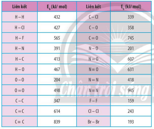 Ví dụ 1: Dựa vào năng lượng liên kết ở Bảng 14.1, tính biến thiên enthalpy của phản ứng: