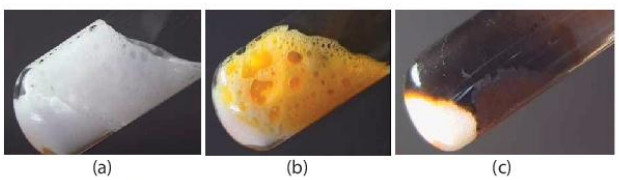 Hình 18.3. Các muối KCl (a), KBr (b), KI (c) phản ứng với dung dịch H2SO4 đặc