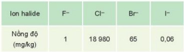Bảng 21.1. Nồng độ các ion halide trong nước biển