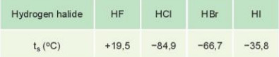 Bảng 22.2. Nhiệt độ sôi (ts) của các hydrogen halide