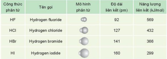 - Phân tử hydrogen halide (HX) gồm một liên kết cộng hóa trị. Các phân tử HX là phân tử phân cực.