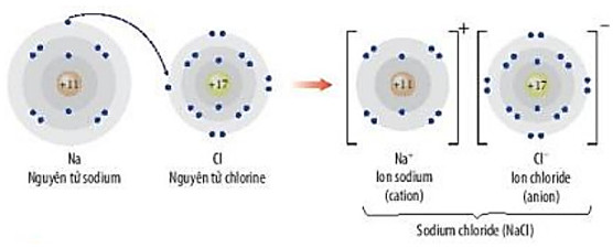 Hình 9.2. Minh họa sự hình thành liên kết ion trong phân tử NaCl