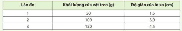 - Độ giãn của lò xo treo thẳng đứng tăng tỉ lệ với khối lượng của vật được treo vào lò xo.