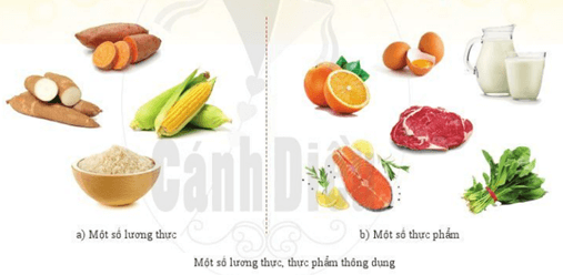 - Lương thực, thực phẩm cung cấp các chất cần thiết như tinh bột, đường, chất béo, chất đạm, vitamin và chất khoáng cho con người.
