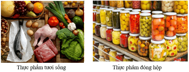 - Lương thực, thực phẩm rất đa dạng. Chúng có thể ở dạng tươi sống (như rau, củ, cá, tôm …) hoặc đã qua chế biến (như cơm, cá rán, thức ăn đóng hộp …)