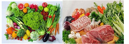 Ví dụ: Thịt, cá, trứng, rau, củ, quả,...
