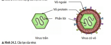 - Virus có cấu tạo đơn giản, gồm lớp vỏ protein và phần lõi chứa vật chất di truyền, một số virus có thêm lớp vỏ ngoài.