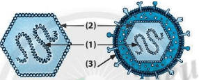 Chú thích (1) để chỉ phần lõi chứa vật chất di truyền của virus.