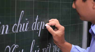 A. Cô giáo đang viết phấn lên bảng